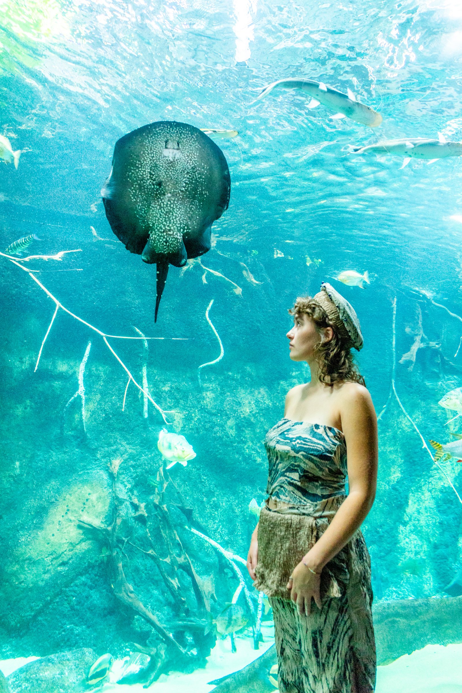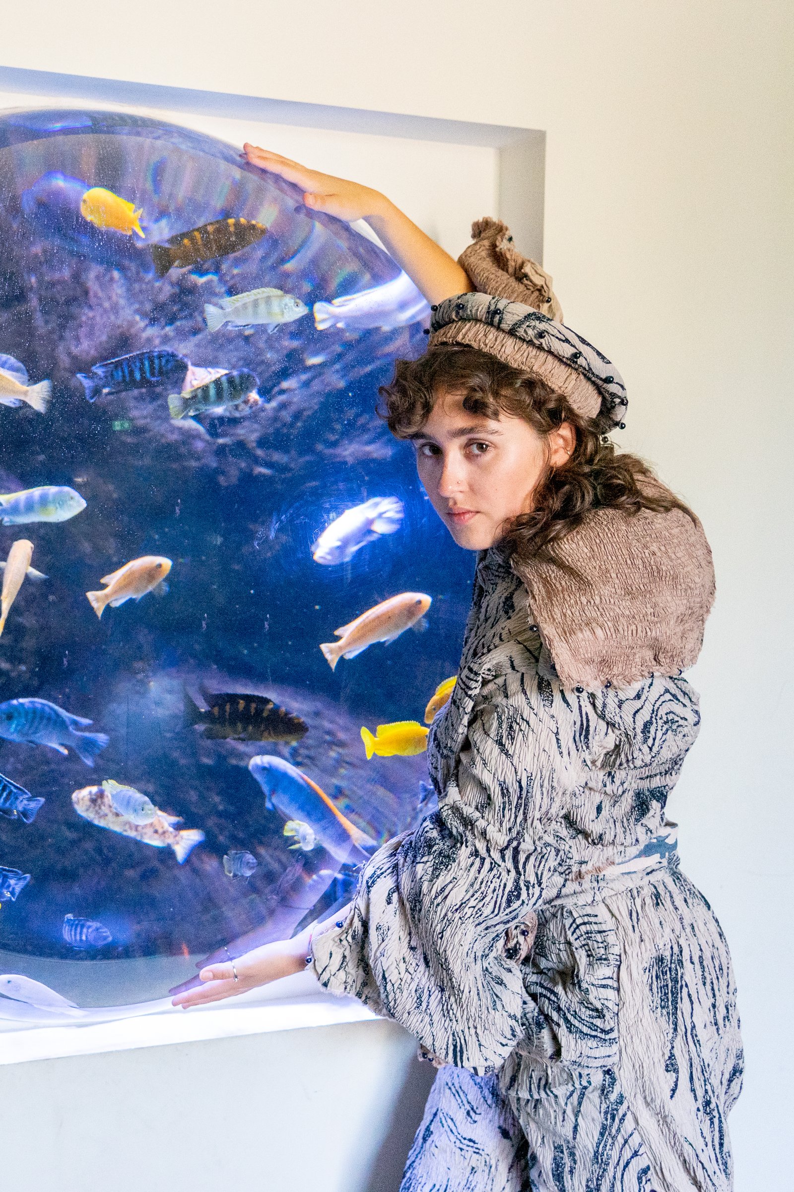 + Editorial for Alina SeeligerAlinas Look is a play on the traditional sailor uniform, showcased at the aquarium.